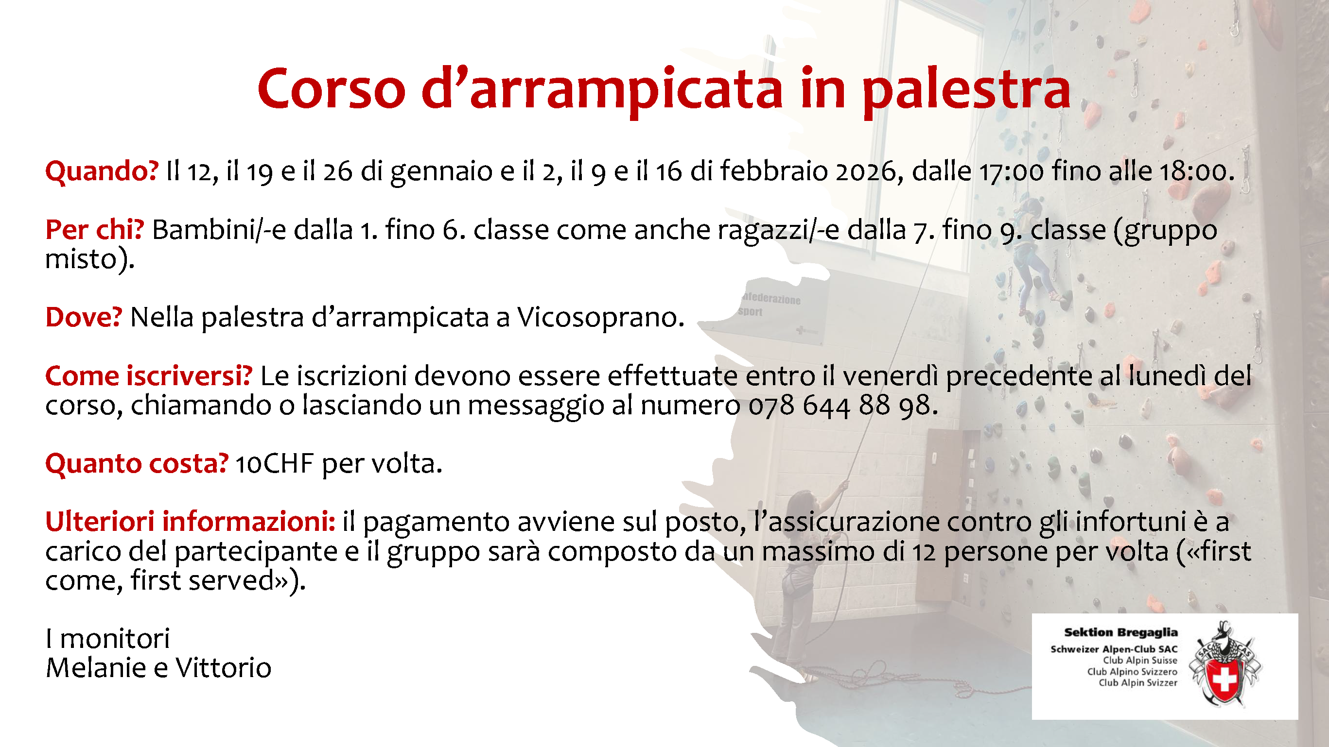 Tutti i mercoledì dal 12.11.2025 fino alla fine di febbraio, presso la pista di ghiaccio a Vicosoprano.